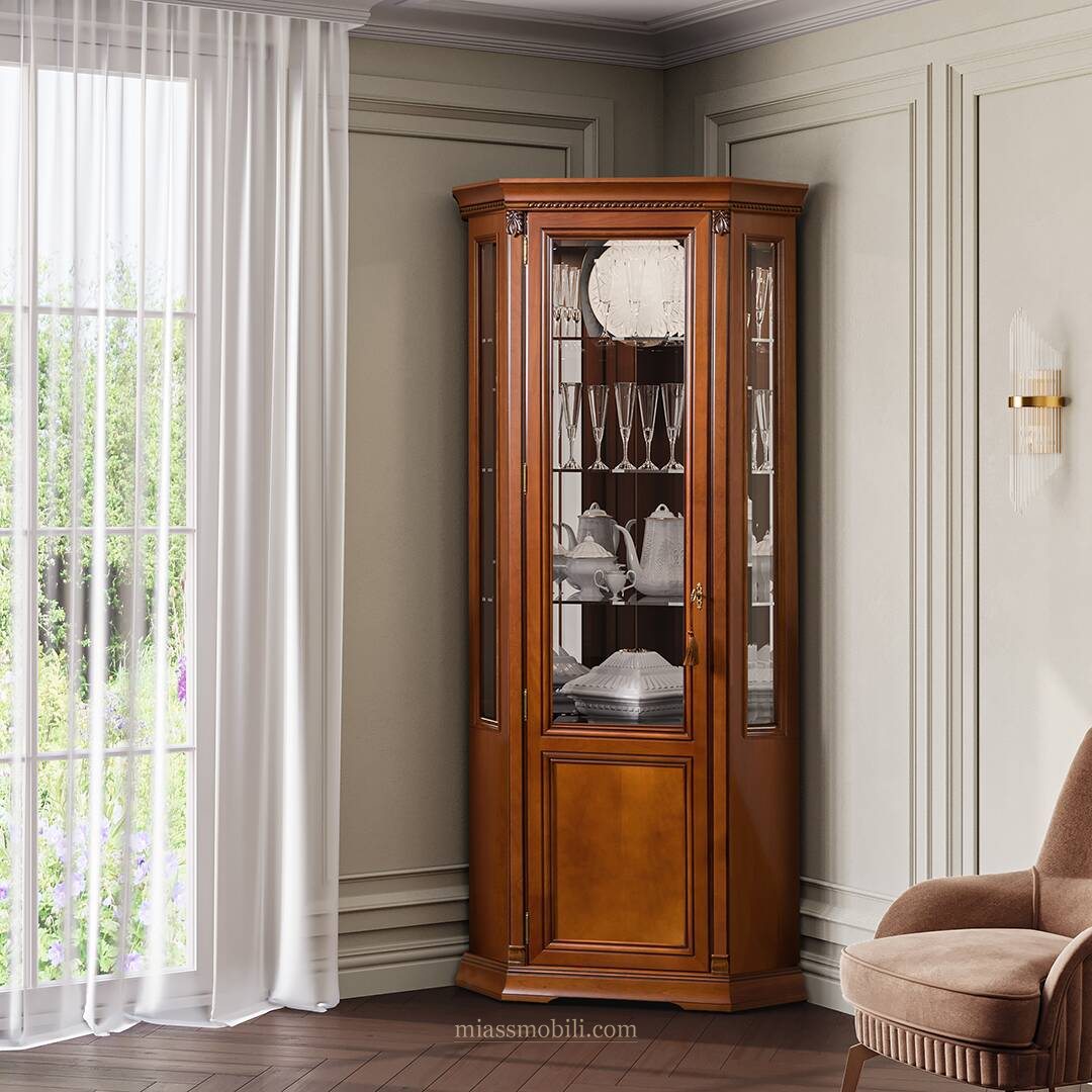 Шкаф для посуды угловой Лоренцо вишня Lorenzo вишня купить в Казани