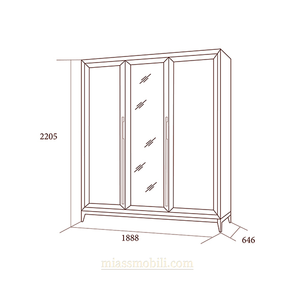 Шкаф 3-х дв .для платья и белья Modena дуб сатин с зеркалом дуб Сатин Modena дуб Сатин купить в Казани