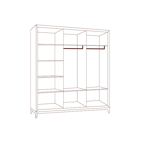 В правой части предусмотрена полка со штангой для хранения длинных вещей и одна полка нижнего расположения.